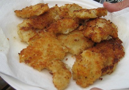 Crush the crackers with a rolling pin. Do not use a food processor which will spin the cracker too fine. Place the prepared crumbs in a shallow platter: set aside. In a shallow platter, beat the eggs together. Beat in the milk and Tabasco sauce: set aside. Dry the clams thoroughly with a paper towel. NOTE: If you proceed without the clams being dry, breading will not adhere to the clams well, and wet clams steaks will result in LOTS of splattering of the hot oil. Tenderize clams by pounding with the textured side of a meat mallet – pay particular attention to the tough siphon end. NOTE: Be careful, as you want the clams to remain in one piece. Dip each clam in the egg mixture; drain off any excess. Then place each clam in the crumbs to coat. Place breaded clam on a rack or plate; repeat process with remaining clams. Let clams stand for 20 to 30 minutes so the breading will set up. While the clams are resting, heat the vegetable oil in a heavy frying pan (cast-iron pan is ideal) over medium-high heat. Add the butter. Heat the oil (but not so hot as to smoke). Give the oil plenty of time to heat up and make sure it is at the right temperature before you begin. If it is too cool, the clams will soak up oil and be greasy. If it is too hot, the clams will burn on the outside before the inside is cooked. Most foods are fried at 350 degrees F. To gauge the temperature, use a Cooking Thermometer or drop a cube of bread in the oil. If it turns golden brown in 1 minute, the oil is ready to fry in. When the oil is hot, use tongs or a spatula to carefully add the clams. Do not crowd the clams. Fry for not more than 30 seconds, then flip the clams for continue cooking for an additional 30 second on the other side. NOTE: It is important not to overcook the clams or they will be tough. Allow the oil to heat back up in between each round of cooking your clams. Remove the clams from the pan with a slotted spoon and place on a paper-towel lined plate, sprinkle with salt and pepper. Repeat until all clams are cooked and serve as soon as possible while warm. Serve with lemon slices and your favorite Cocktail Sauce or Tartar Sauce.