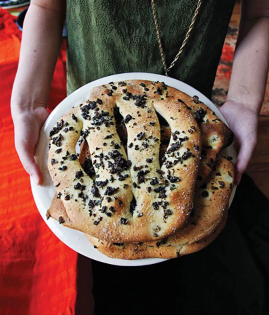 Put the potatoes in a large pot and cover with cold water. Bring to a boil over medium heat, salt liberally, and cook at a gentle simmer until the potatoes are extremely tender, 35 to 40 minutes. Drain the potatoes and peel them while they’re still warm. Pass through a ricer onto a clean work surface. Sprinkle the flour evenly over the potatoes and form into a well. Crack the egg into the well and gently beat with a fork. Gradually incorporate the egg into the flour. Knead the dough until smooth. Cut the dough into four even pieces. Roll each piece out into a !4-inch-thick rope, and then cut each rope with a pastry cutter or knife into !4-inch pieces. Place the gnocchetti on sheet pans lightly dusted with flour, cover, and refrigerate until ready to use. Position a rack in the center of the oven and heat the oven to 325°F (170°C). In a large bowl, toss the tomatoes with 2 T. of the oil, 1 tsp. salt, and the sugar; toss well to combine. Arrange the tomatoes in a single layer in an 8 x 8-inch baking dish. Make a bundle out of cheesecloth with the cloves, thyme, cinnamon stick, orange zest, lemon zest, rosemary, and peppercorns. Add this bundle to the pan and roast in the oven until the tomatoes are tender and beginning to caramelize, about 1 Vi hours. Remove from the oven and discard the bundle. In a 12-inch skillet heat the remaining 2 T. oil over medium heat. Add the cabbage and a generous pinch of salt and cook, stirring often, until the cabbage wilts, about 5 minutes. Add the tomatoes and 1/4 C. of water, cover, and reduce the heat. Cook, stirring often, until the cabbage is meltingly tender, 35 to 40 minutes. Season to taste with salt. Bring a large pot of well-salted water to a boil. Drop the gnocchetti into the water and cook until they begin to rise to the surface, about 3 minutes. Transfer the gnocchetti to the cabbage with a slotted spoon or spider and toss to combine. Serve the gnocchetti in individual shallow bowls.