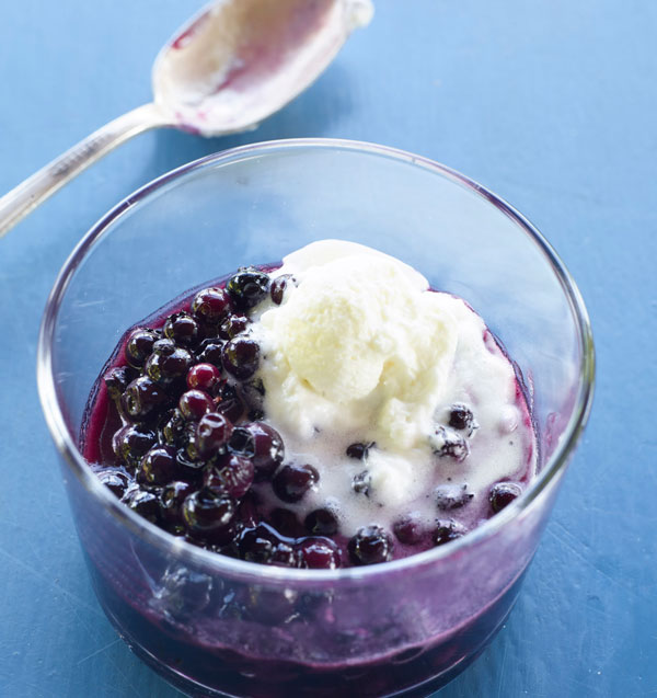 Sautéed Blueberries with Lavender Essence and Whipped Cream