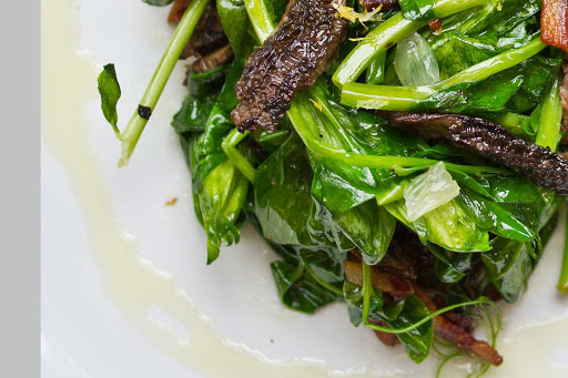 Sautéed Pea Tendrils and Morel MushroomsÂ