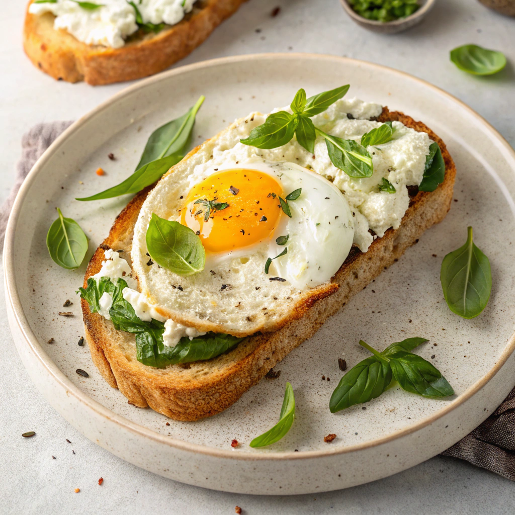 Add basil pesto to a small non-stick skillet and heat pan over medium-low heat. Basil pesto includes oil and should heat up well. Crack eggs into a bowl. Remove any tiny shells. Now slowly add eggs into hot skillet and season generously with salt and black pepper. Cook eggs to your liking. Generally, for a medium-hard egg, cook 2-3 minutes on one side and flip for 30 seconds. Spread 1 tablespoon of softened cream cheese onto each piece of sliced and toasted bread. Top each piece of bread with half of the mashed avocado. Drizzle avocado with a bit of sweet honey. Place cooked pesto egg on top of the toast and serve immediately while hot.