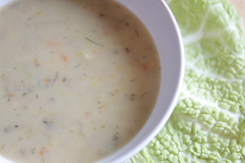 Let boil covered for about 20 minutes. once the potatoes are cooked through add a dollop of butter and puree about 1/2 of the soup using an immersion blender, until you have a consistency you like… I enjoy some small bits in a smooth combined thickish stock. Add: