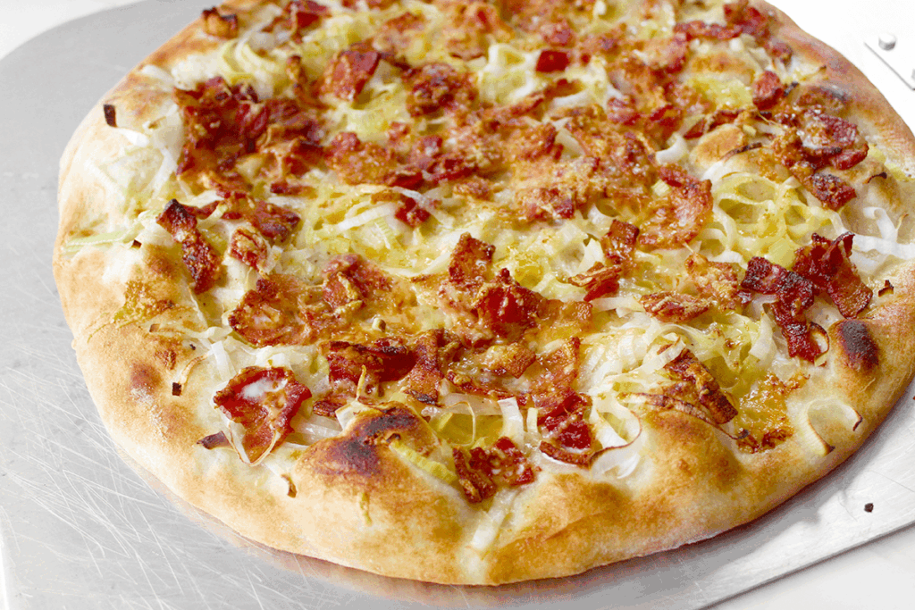 White Pizza with Bacon, Leeks, and Cream