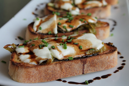 Caramelized Celery and Mozzarella Crostini