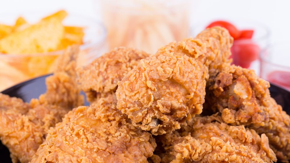 6 CORNFLAKE CHICKEN BITES Cut boneless chicken breasts into small pieces. Dip in milk or buttermilk, then dredge in seasoned crushed corn flake crumbs, cornmeal or panko. Pan-fry in oil, drain, cool and eat cold with celery sticks, with ranch or blue cheese dressing for dipping.