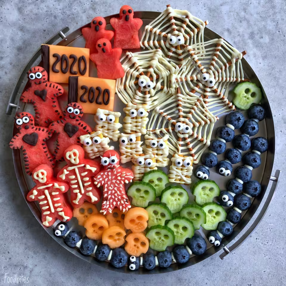 3 large pitted black olives, cut into 48 tiny circles, for the pupils